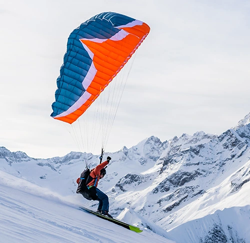 Le parapente à ski est une activité qui allie la glisse et le vol libre. Le décollage s’effectue skis aux pieds depuis une pente enneigée, permettant de s’élever dans les airs pour survoler les panoramas alpins et les vallées. Le vol se termine par un atterrissage en douceur sur une zone dégagée, le tout encadré par des moniteurs qualifiés.